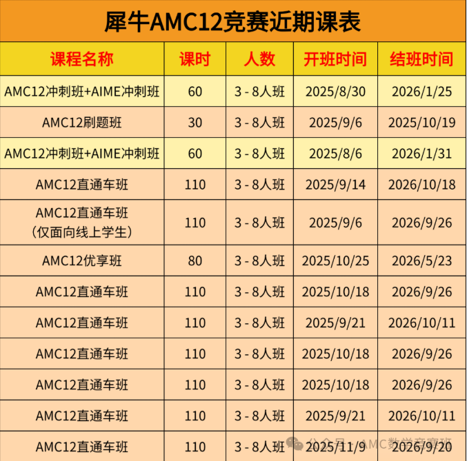 AMC10/12课程类型:精品小班3-8人 / 一对一(滚动开班)