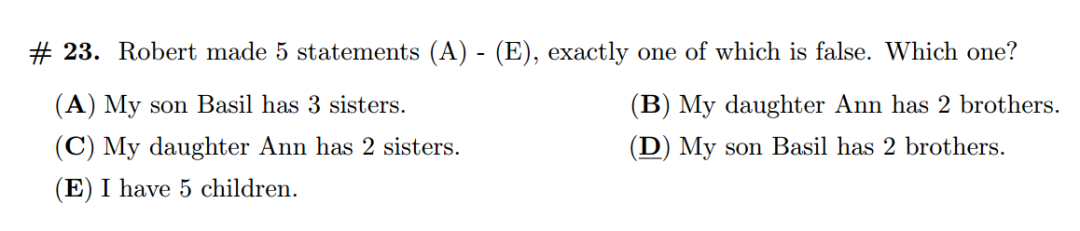 这是典型的逻辑推理文字题,需要先找到突破口信息。通过字面分析,(D)与(B)是矛盾的,我们可以通过其他选项来验证。