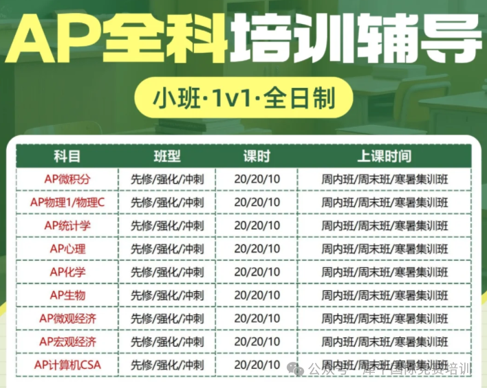 上海AP课程辅导培训,10门AP课程全5分攻略!附培训课程!