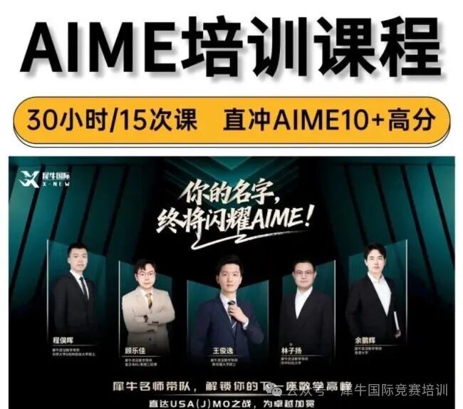 2024 年犀牛 AIME 学员考到 10 分以上,顺利拿到康奈尔、UCL 等名校面试邀约。在AIME权重翻倍的 2026 年,选对培训提升方案,才能让 AIME 竞赛从 “申请短板” 变成 “加分利器”—— 选择犀牛的海内外名师 + 30 小时分阶课,就是帮孩子进入冲击 10 分的 “快车道”