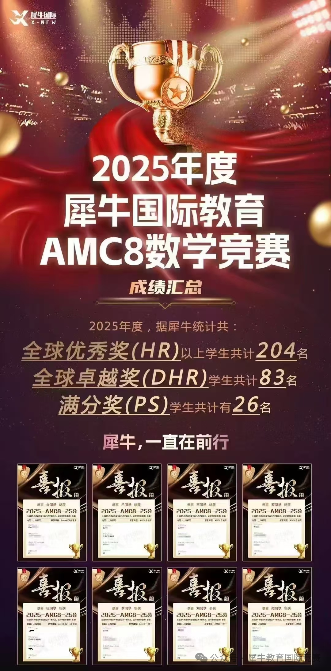 目前犀牛针对2026年AMC8竞赛开设AMC8培训冲刺班,名师辅导短期提升上分啦!