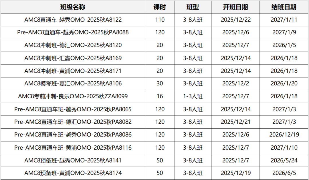 AMC8预备班(25节课):适合2-3年级,想要提前预学AMC8竞赛知识的学生