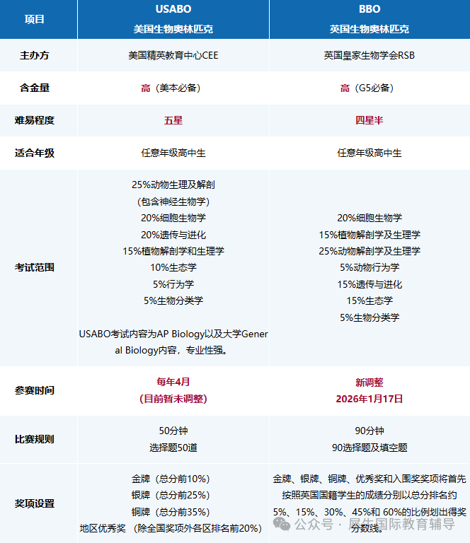 高年级学生(11-12年级):若目标英美双申,可同时备战,USABO深度备考能覆盖BBO核心考点,实现“一备双考”