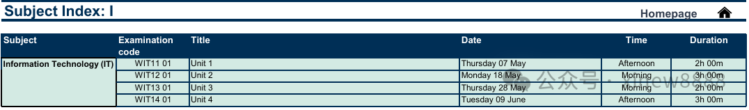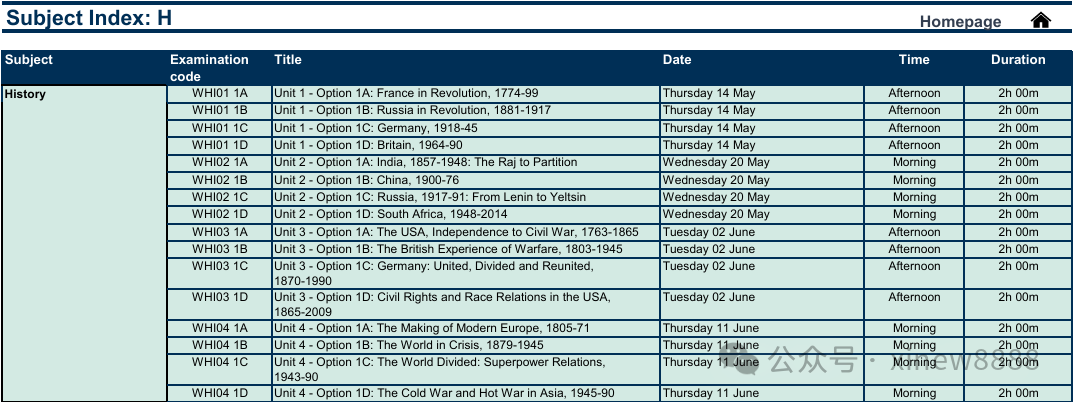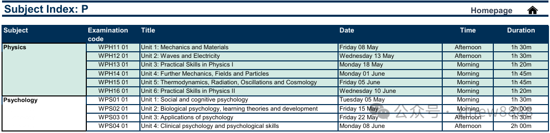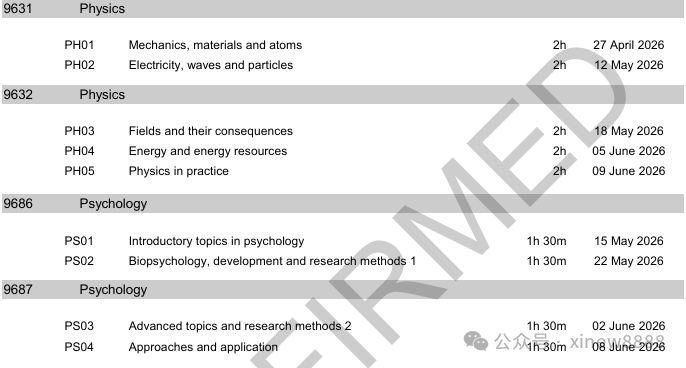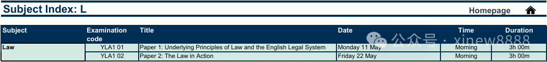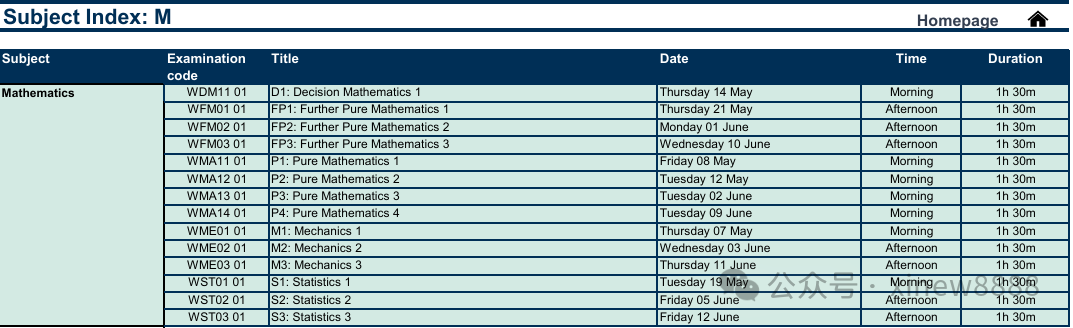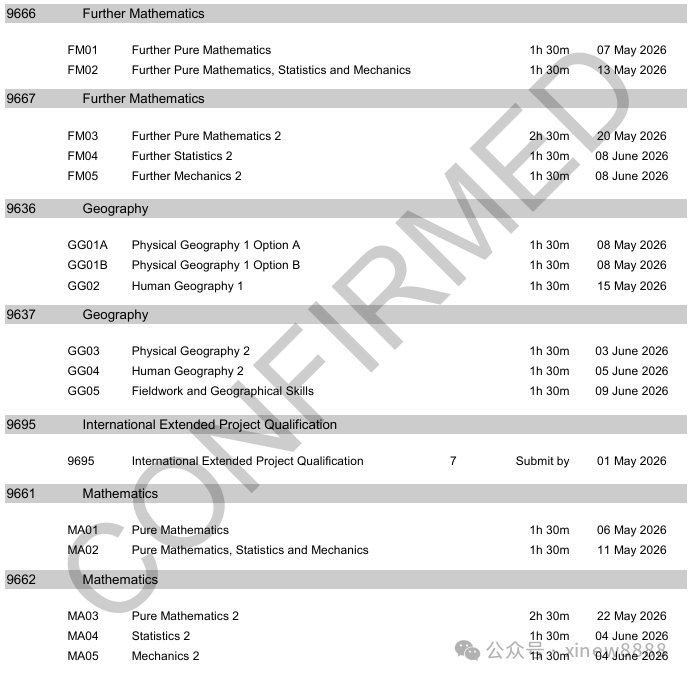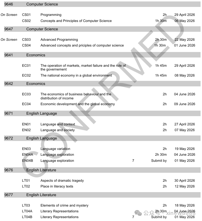 ALevel大考各科目考试安排: