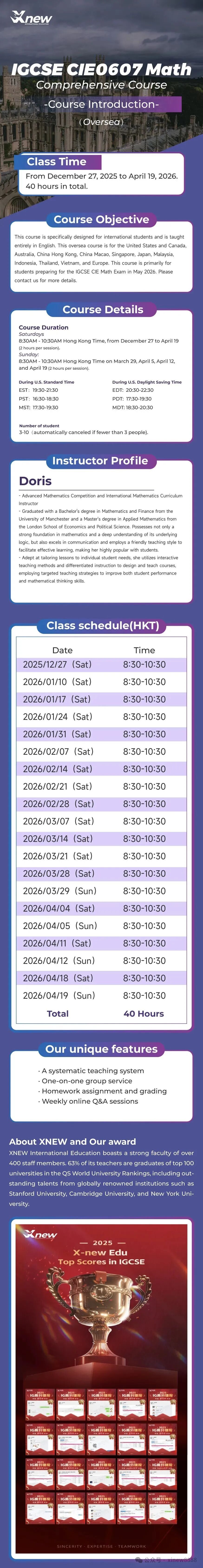IGCSE数学0580、IGCSE数学0606、IGCSE英文ESL、IGCSE物理、IGCSE化学、IGCSE生物、IGCSE经济等。
