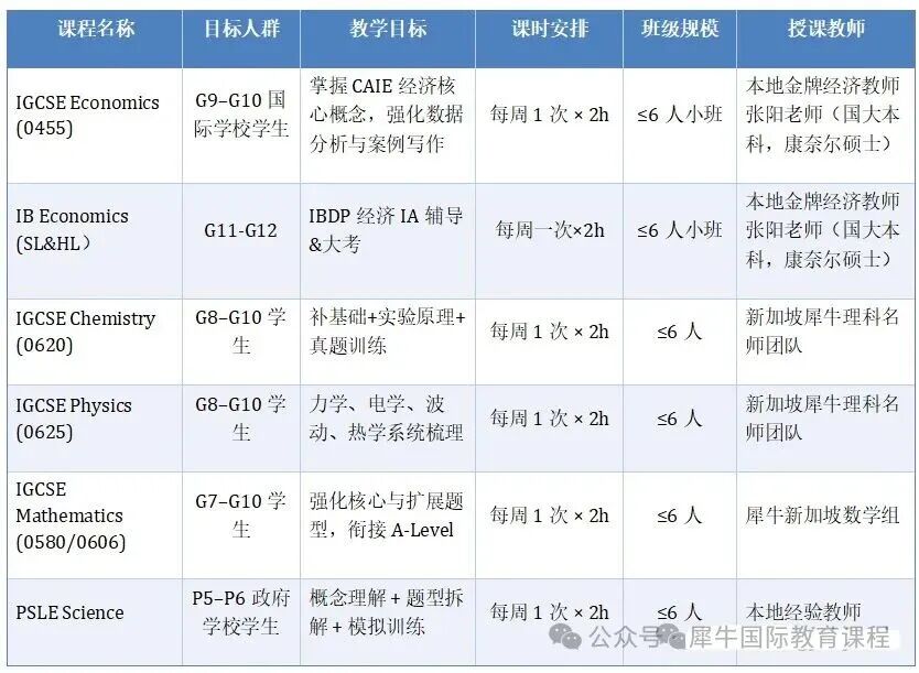 近期犀牛教育新加坡IGCSE开班计划如下表: