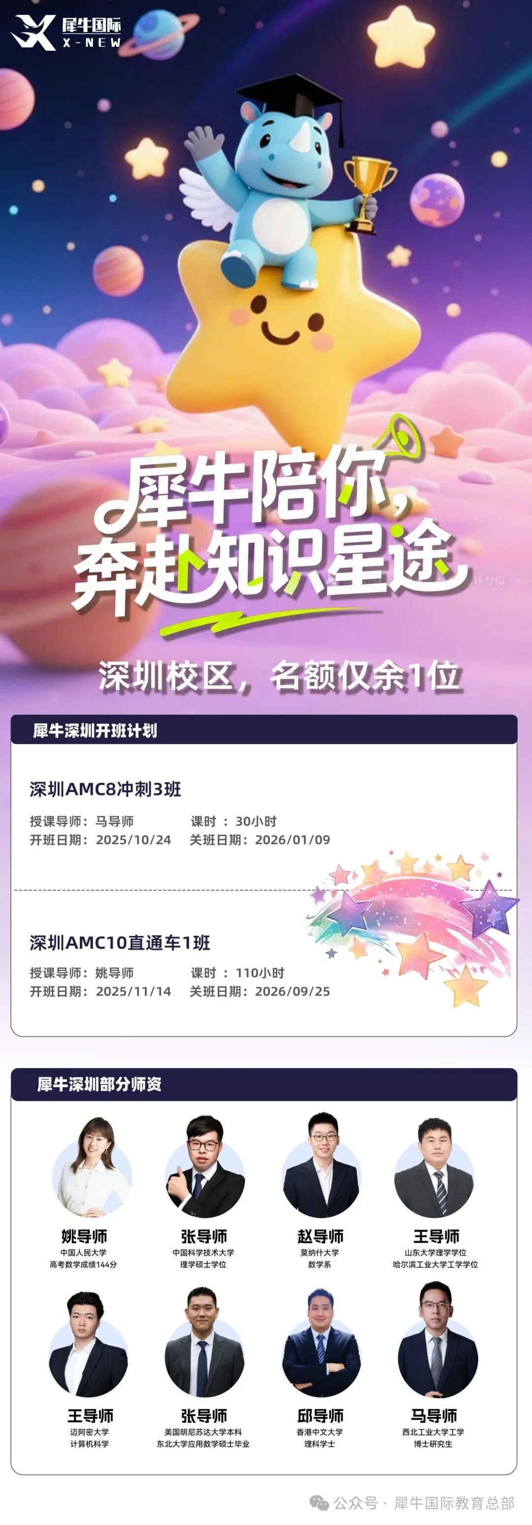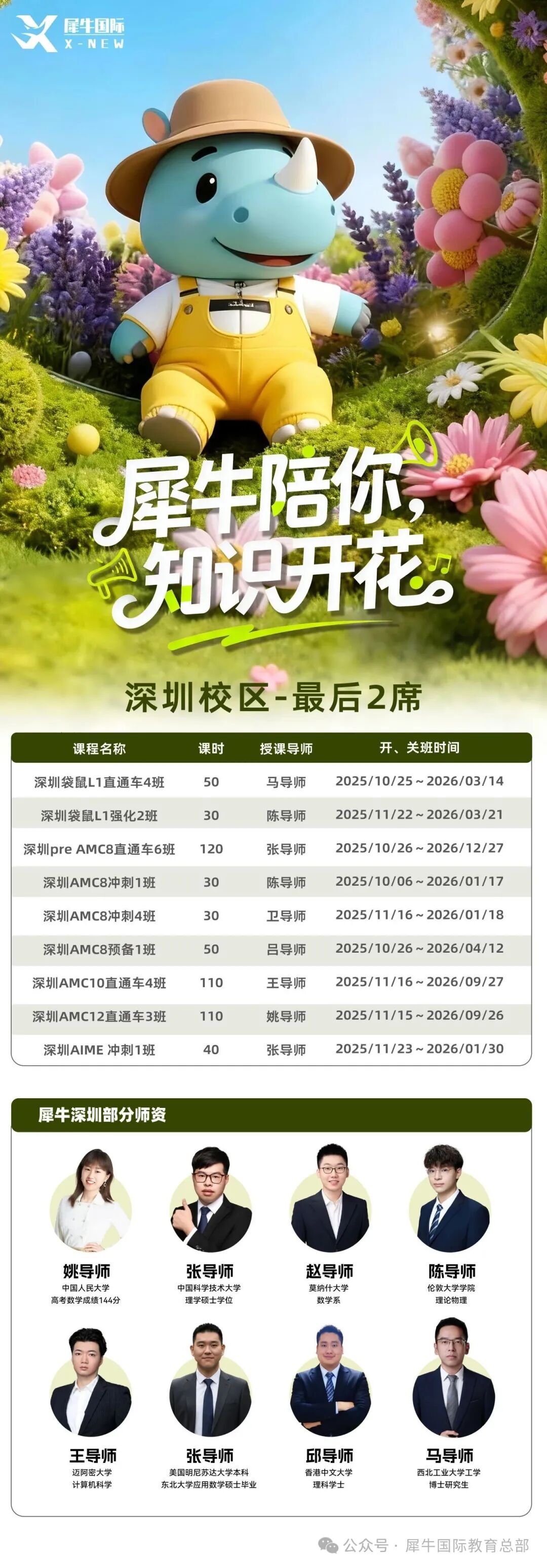 犀牛深圳校区AMC8冲刺班开课中,南山、福田双校区同步开课!犀牛提供AMC8报名、课程辅导的一站式服务,让孩子专注备考