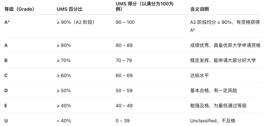 通通常ALevel各个考试局会考试局会把原始分转换为UMS分数,再用UMS分判断学生最终等级
