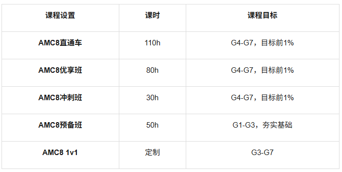 AMC8直通车 110h G4-G7.目标前1% AMC8优享班 80h G4-G7.目标前1%