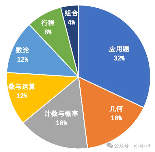 AMC8数学竞赛主要考察代数、几何、数论、组合这4个板块的内容,每个板块考试占比不同。