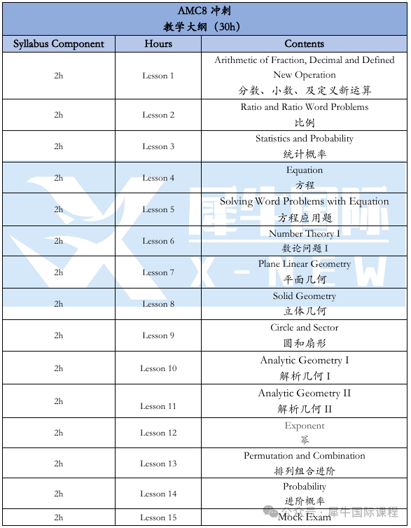 犀牛国际教育针对具有一定数学基础,想要考前冲刺的学生,推出了AMC8竞赛培训圣诞班/冲刺班,利用这段时间快速提升,实现弯道超车。
