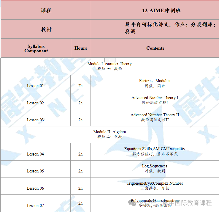 AMC10-AIME冲刺班:帮助补充至AMC12水平(三角函数、复数、向量等),夯实基础的同时培养解题思维。