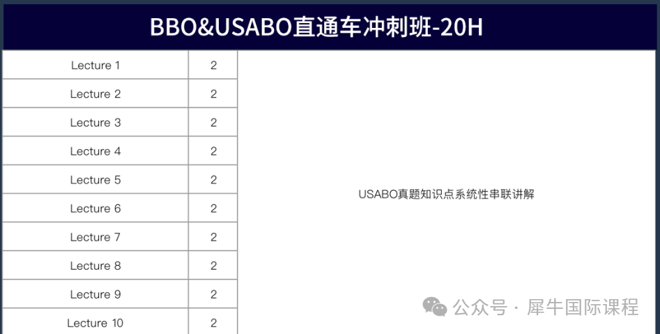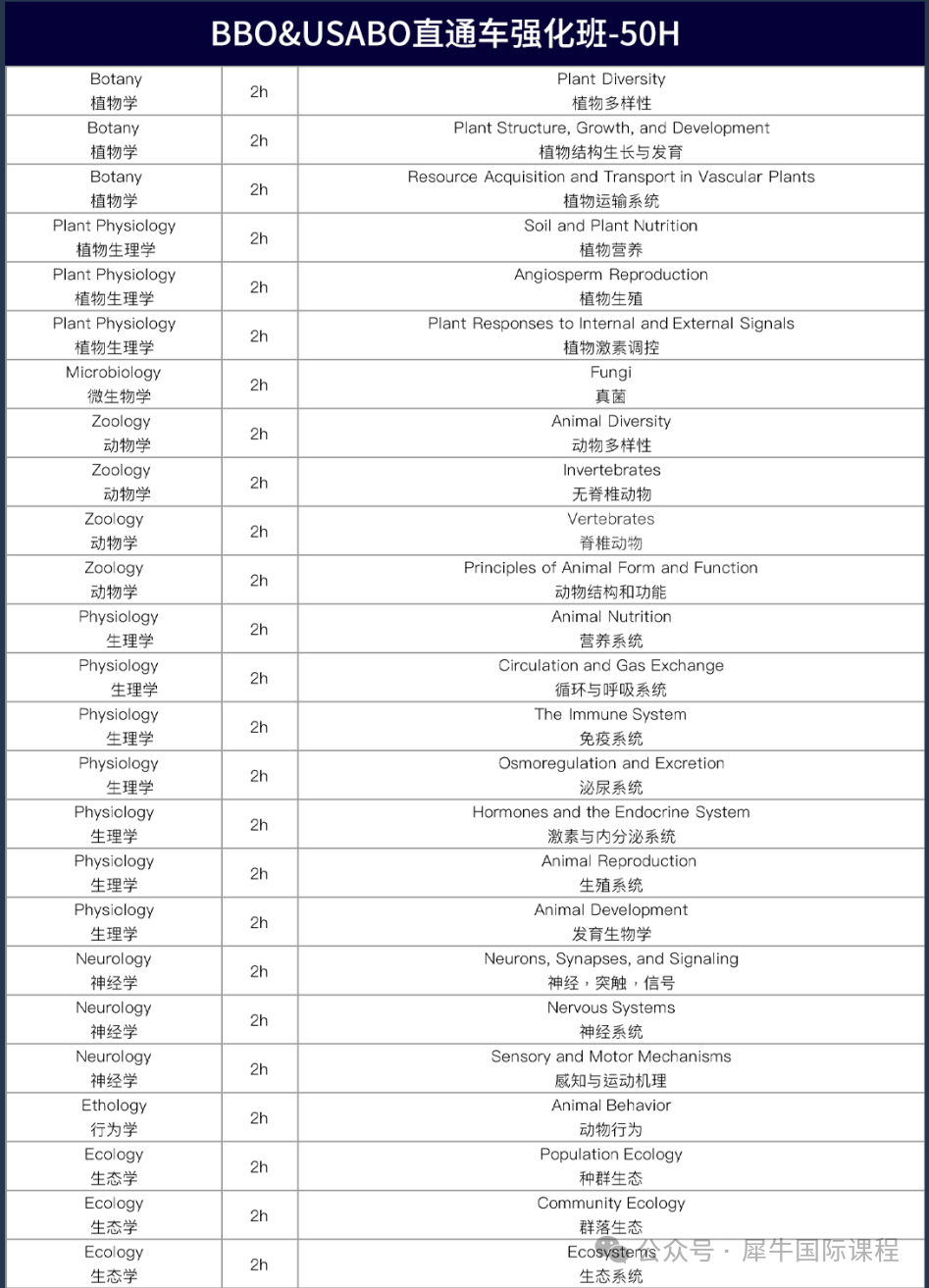 针对USABO竞赛犀牛设置多种培训班型,全力助力考生冲超金!