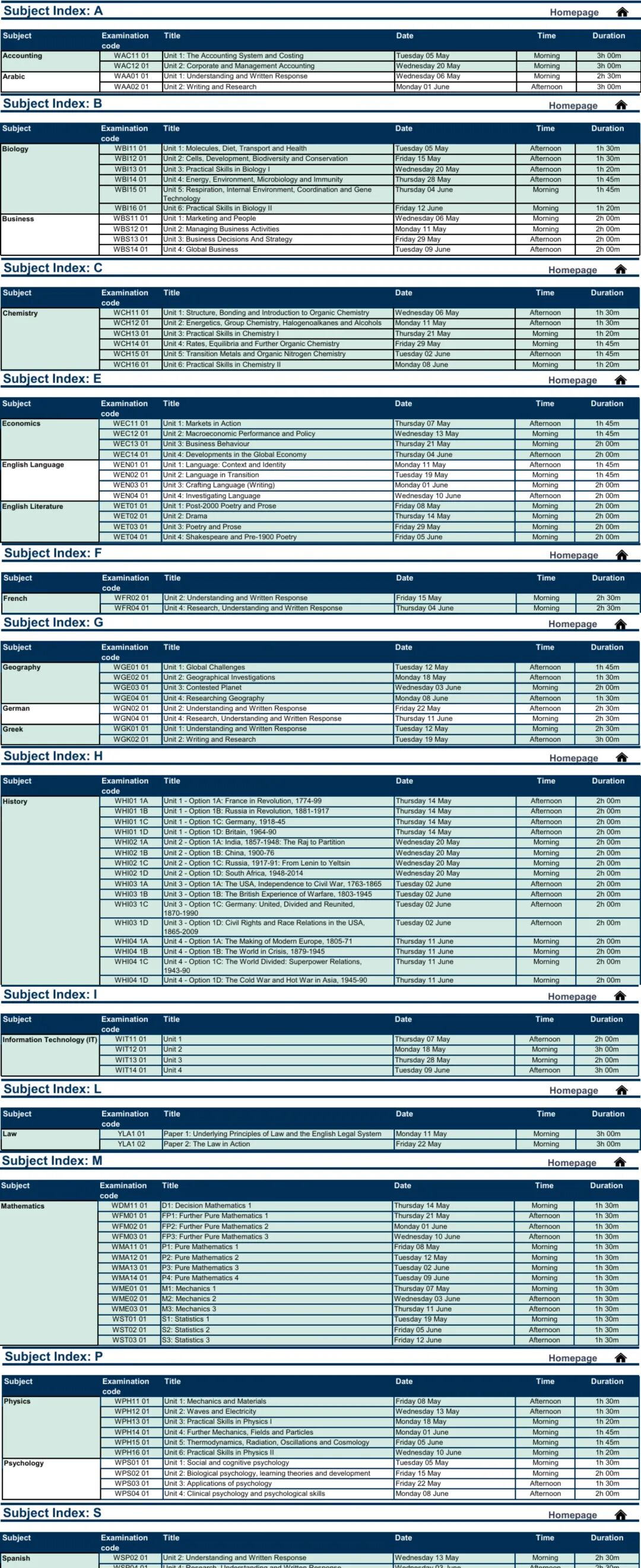 A-Level考试具体时间: