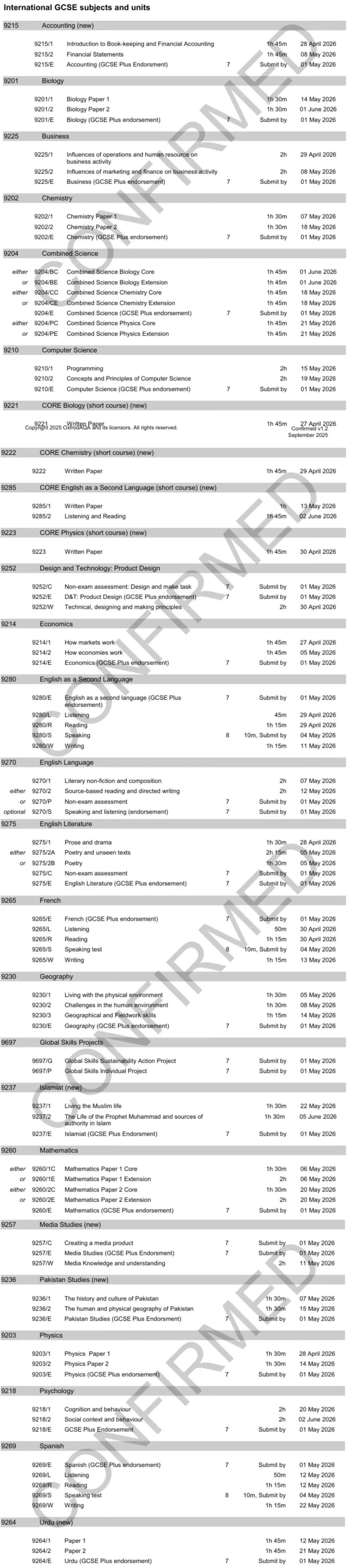 GCSE考试时间:2026年5月7日-2026年6月15日