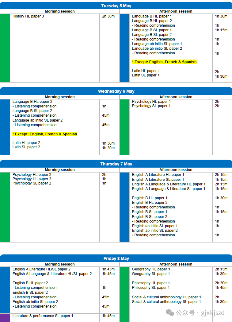2026年IB大考考试安排