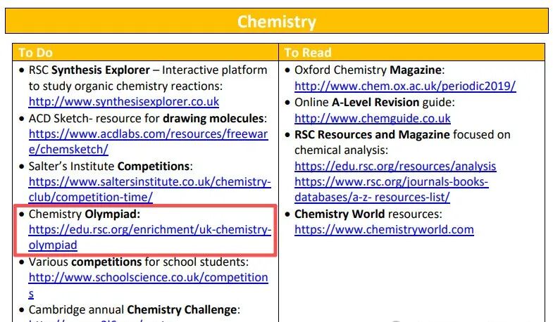 关于化学类专业,比如申请剑桥的自然科学专业(自然科学分两个方向),剑桥大学建议申请者参加的竞赛项目包括: