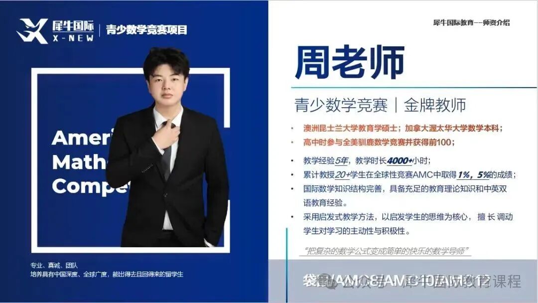 教学经验5年,教学时长4000+小时;累计教授20+学生在全球性竞赛AMC中取得1%,5%的成绩;