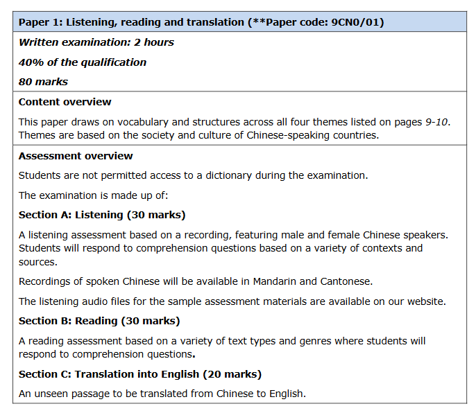 Paper1:Listening, reading and translation