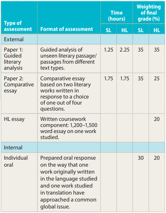 笔试的Paper 1要求学生围绕没有学过的文学作品撰写文学赏析文章,SL学生可以2选1.HL学生必须两篇都写;Paper 2需要对之前学过的两篇文学作品进行比较分析。在此基础上,HL学生还要交一篇上千字的论文。