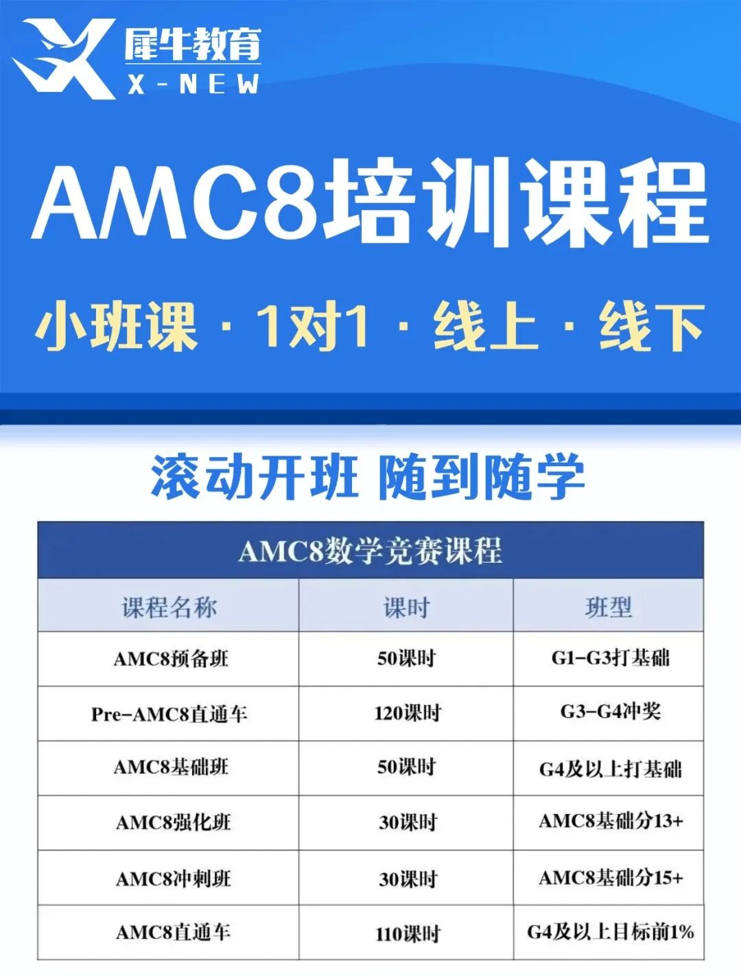 犀牛国际教育是做AMC数学竞赛辅导起家的,AMC辅导经验十分丰富,师资超强、出分率高,还精准教学。针对2027年的AMC8.开设了AMC8培训课程全程班,适合不同基础的学生。
