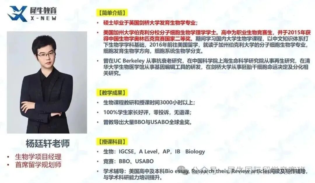 犀牛教育生物竞赛老师: