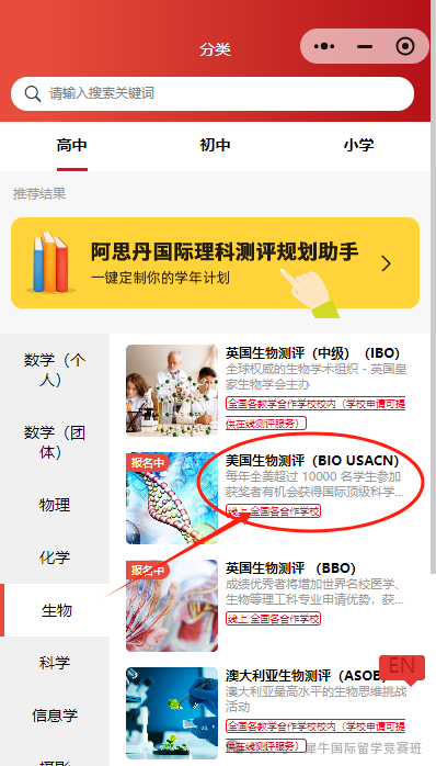 选择高中阶段,生物,下滑选择“BIO USACN”