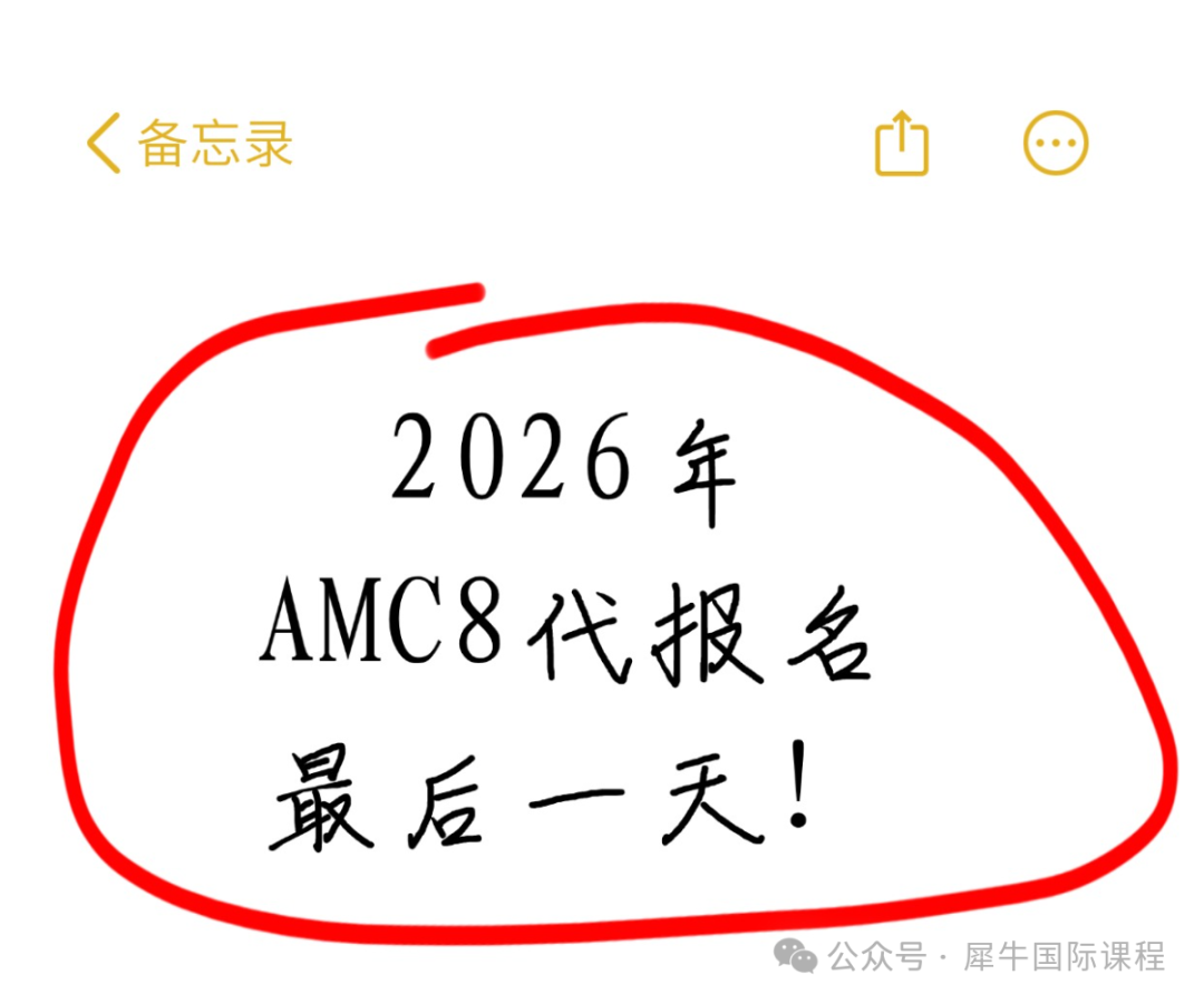 AMC8代报名倒计时已开始,今天是AMC8代报名最后一天,需要AMC8代报名的家长不要错过,添加微信:xiniujiaoyu3咨询代报名,错过又要等一年时间!