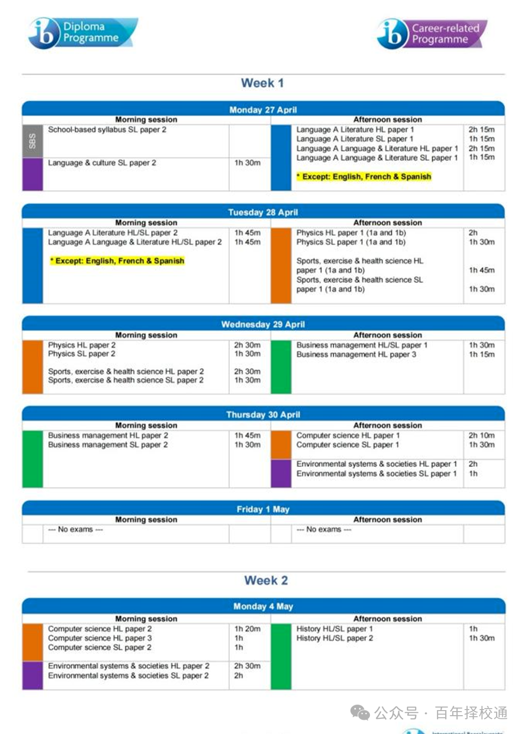 适用对象:于2026年5月首次参加语言A考试的学生。