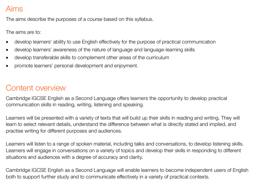 国内学生学CIE ESL,主要对应English as a Second Language (Count-in speaking) (0511)和English as a Second Language (Speaking endorsement) - 0510.