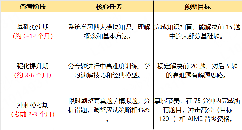 若计划用1-2年时间备战,可参考以下阶段安排: