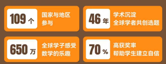 袋鼠竞赛是目前全球最大的数学活动之一。截止目前已经有109个全国,全球超650万学生参加。给对数学感兴趣的小朋友提供了全球竞技的机会。