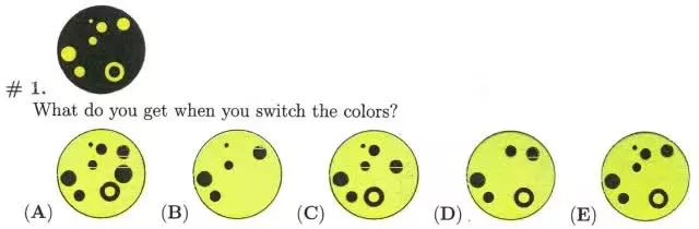 看下面这道1、2年级的视觉训练题目,问一个图像颜色交换一下后会变成什么样子?