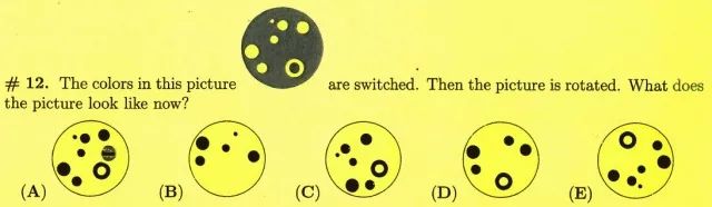 第一遍看这个题目的时候有点懵,再仔细看题目、看图案,才发现,原来每只瓢虫身上都有圆点,而圆点的数量也各不一样,因此文中强调了一句“in the order of increasing number of dots”,必须要理解这句话,才能明白需要根据圆点的数量来连接瓢虫的道理。这题的答案是D。