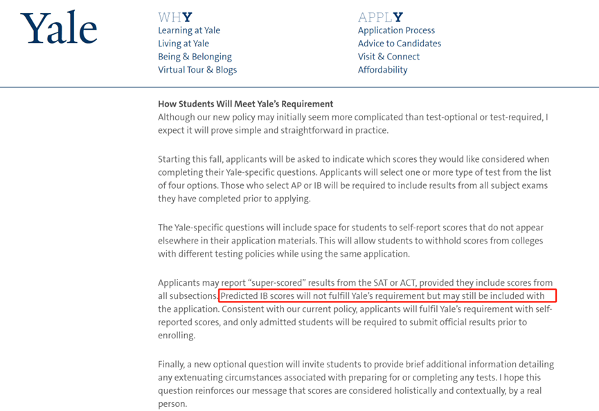 耶鲁大学在其整体录取流程中考虑IB预估分,但这并非唯一或主要的因素。耶鲁大学没有设立具体的IB成绩底线要求,但是大部分申请者的IB成绩都在38分以上。