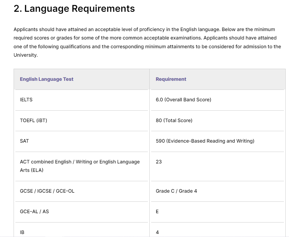 IGCSE EFL达C/4级,或ESL达B/5级,即可满足英语要求