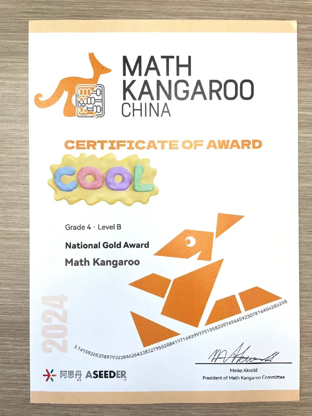Math Kangaroo 成就奖:获得满分150分