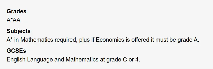 LSE:多数专业都要求申请人IGCSE多门科目获得A或A*(7-9)的好成绩,GCSE数学和英语至少需要B(or 6)。