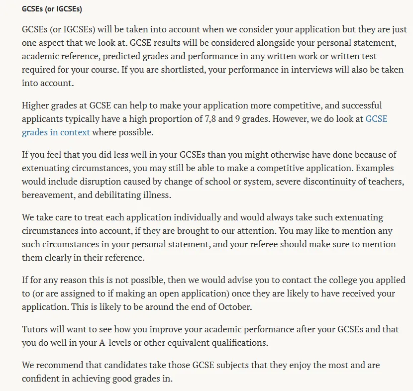牛津大学:虽然没有明确的GCSE最低要求,但会将GCSE成绩作为参考,成功录取者通常有多个7/8/9等级的高分。