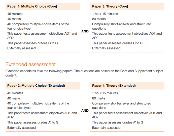 CIE考试局,IGCSE生物考试设置