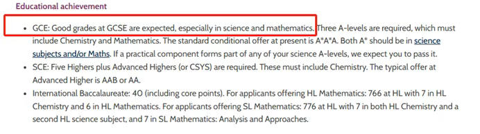举例:牛津大学与化学系官网表示,期望申请人有良好的GCSE成绩,尤其是在科学和数学方面。(*GCSE与IGCSE有同等申请效力)