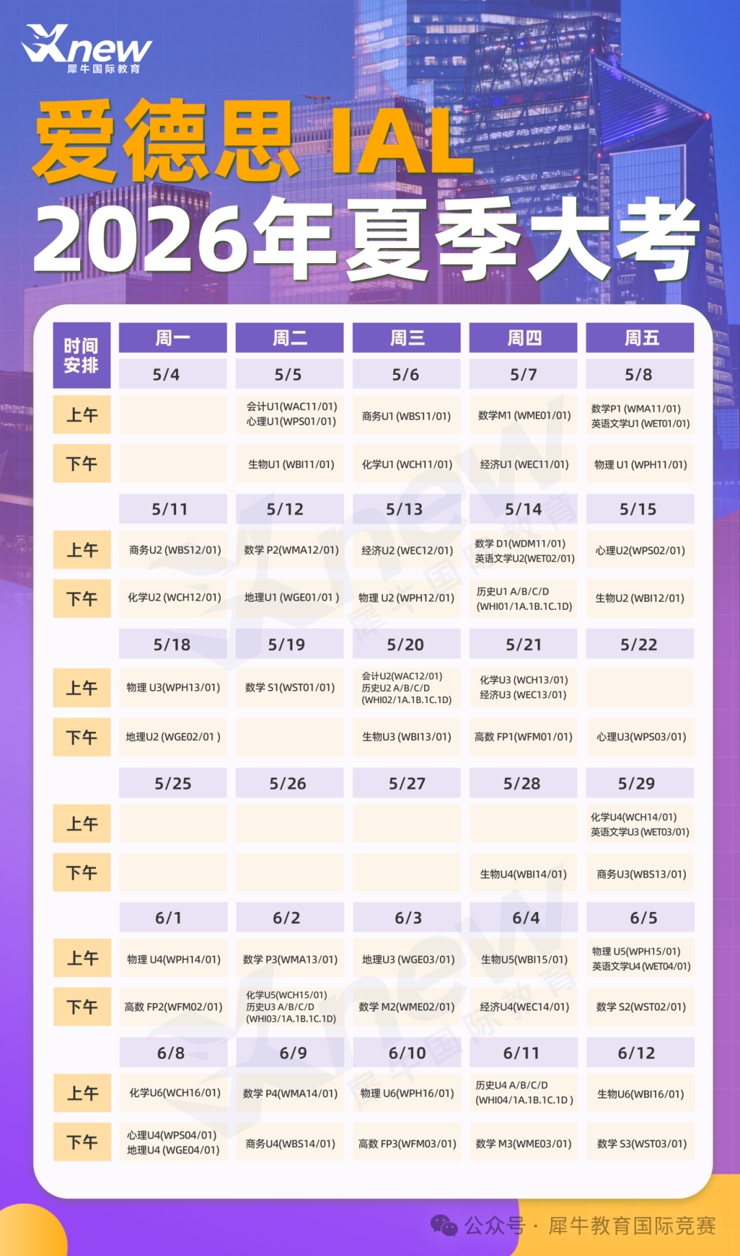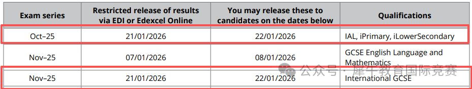 爱德思考试局2025年10月IAL考试系列,成绩于2026年1月21日下发给考试中心,1月22日向学生公布。