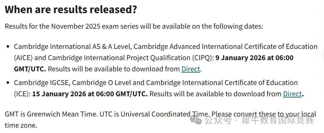 剑桥IGCSE、剑桥O Level放榜时间: 2026年1月15日早上6:00(GMT/UTC)