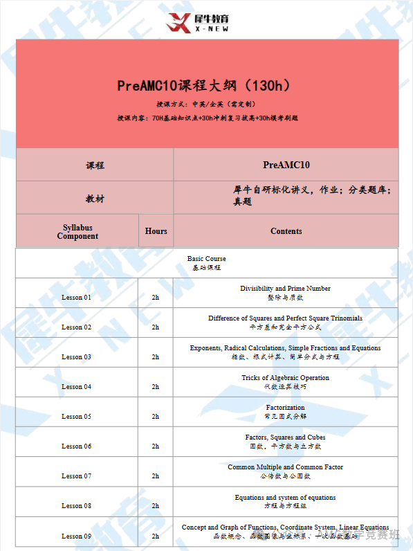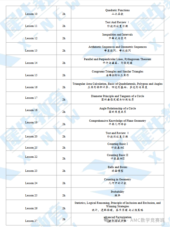 课程目标:长线夯实基础,逐步适应AMC10竞赛难度,冲AMC10前1%或5%奖项或者晋级AIME。