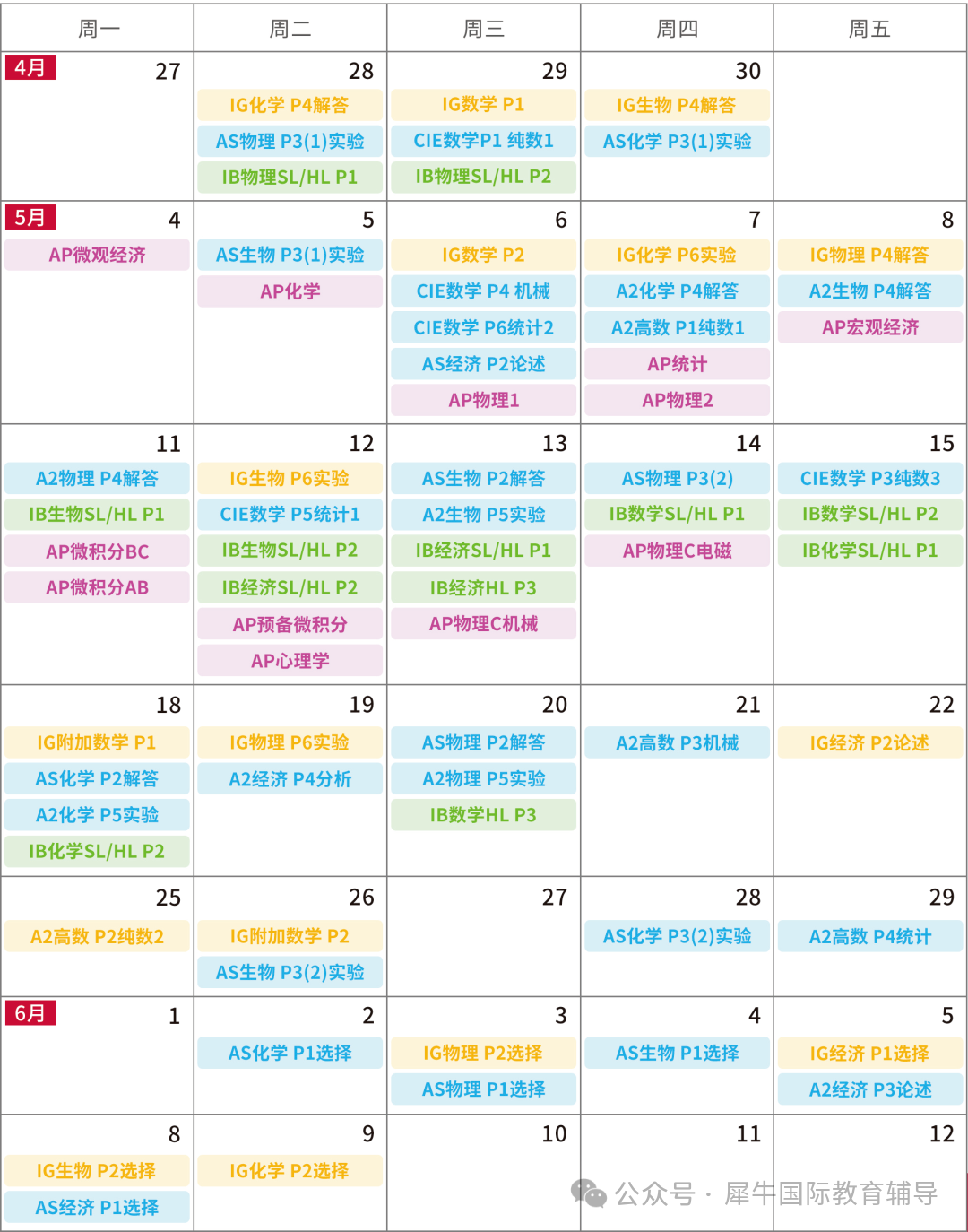 2026 IG/A-LEVEL/IB/AP考试日历汇总