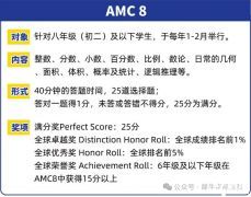 2024-03-202024年AMC8数学竞赛已经告一段落了,很多家长问老师AMC8和AMC10竞赛有什么不同?2025年考AMC8还是AMC10?怎样基础的孩子可以考呢?从AMC8到AMC10并没有大家想的那么......