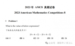 2024-03-06AMC8竞赛是美国数学竞赛(American Mathematics Competitions,简称AMC)中的一个级别,面向全球8年级(初二)的学生举办。该竞赛旨在考察参赛者在数学科目上的理解、......