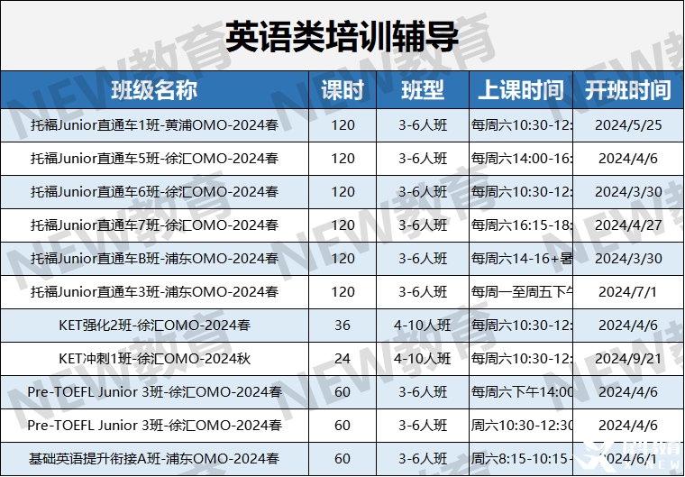 上海犀牛小托福培训课程火热招生中,从Pre A1到B2,⼀站式实现语⾔能⼒通关,目前小托福全程和强化班设置如下: