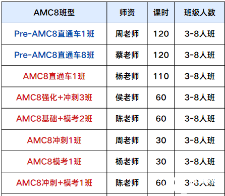 AMC8基础班、AMC8强化班、AMC8冲刺班