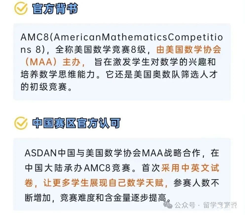 AMC8数学竞赛是AMC系列赛事之一,全球已经有30多万人参加,也是国内小初阶段最具含金量的数学竞赛之一,优异的AMC8数学竞赛成绩对于备考上海三公学校、北京六小强学校等都能起到一定的助力!